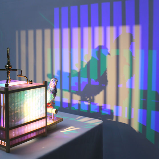 Bamboo, sequins, resin, perspex, LED lights, W14 x D34 x H19.5 cm, 2023